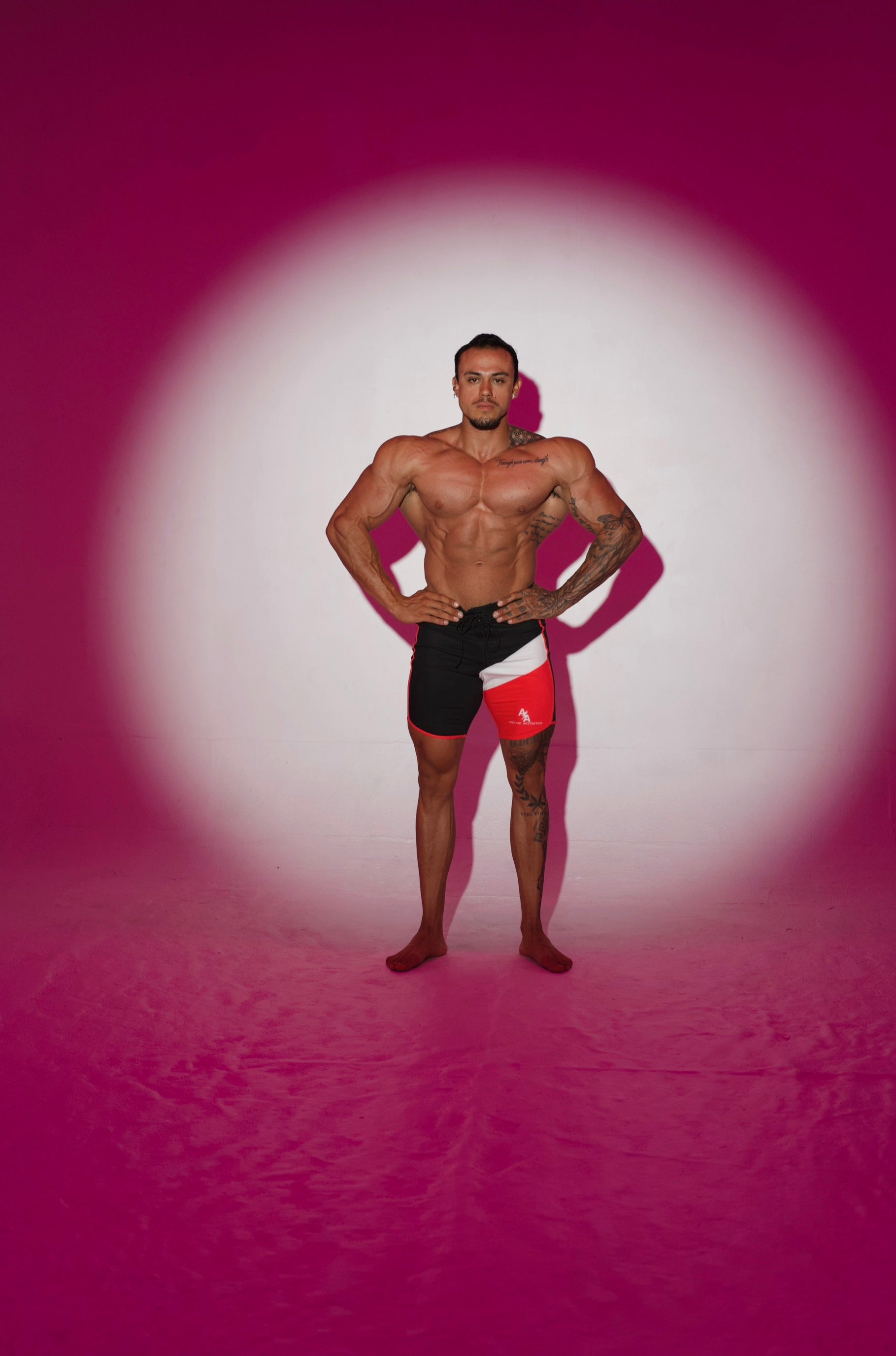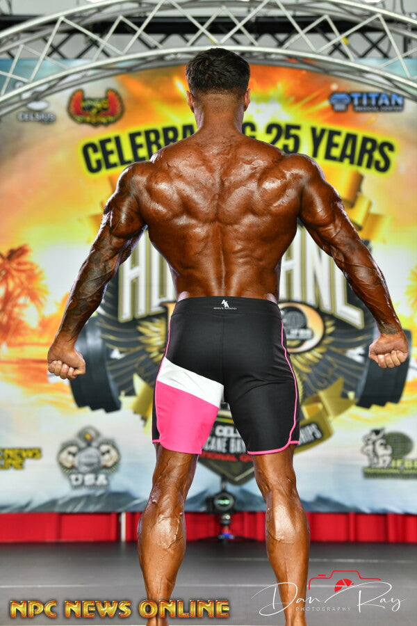 All eyes on you—before the judges even call your number. The Showstopper shorts were designed for the bold competitor who wants to make a loud entrance. With hot pink accents cutting across the deep black, this piece screams confidence, dominance, and flair.